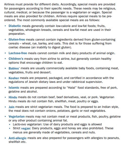 Types of Meals on Board: